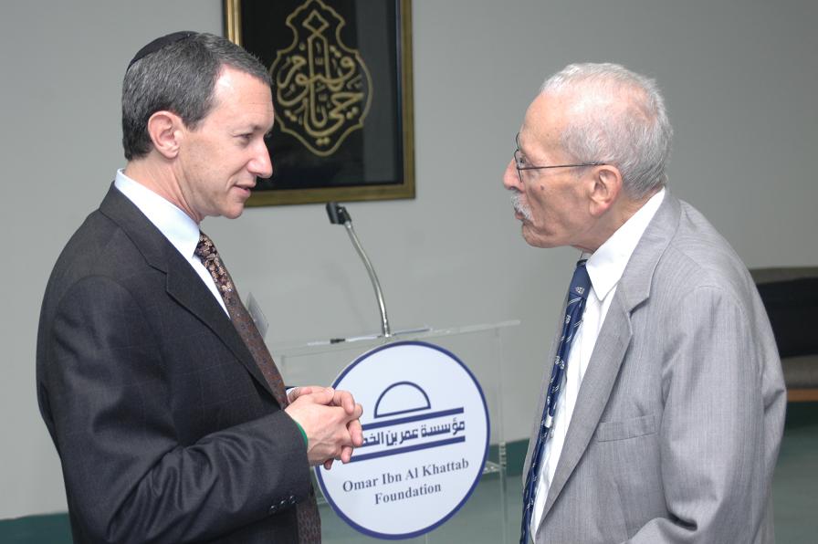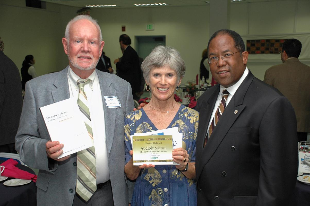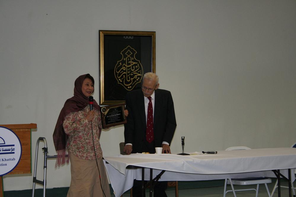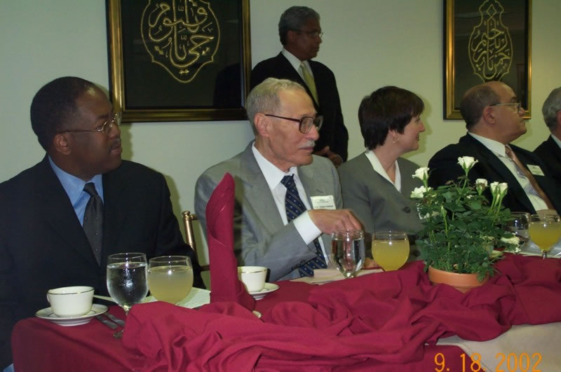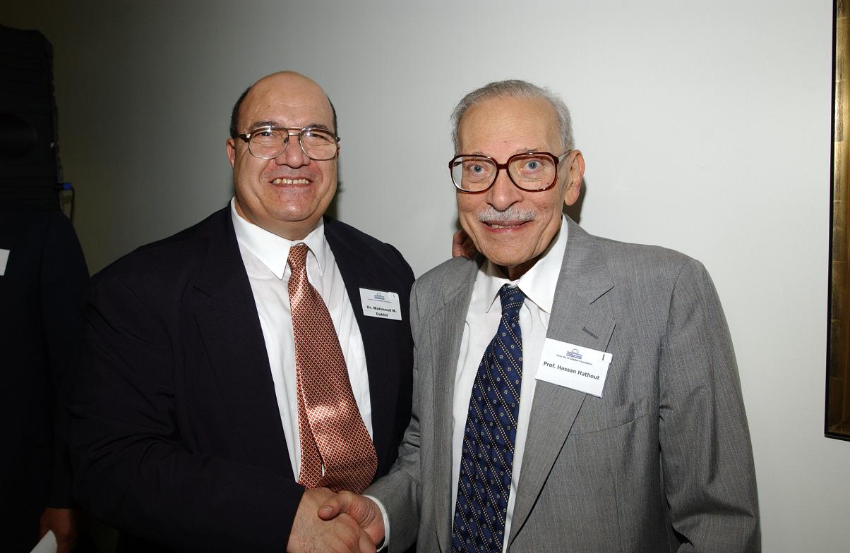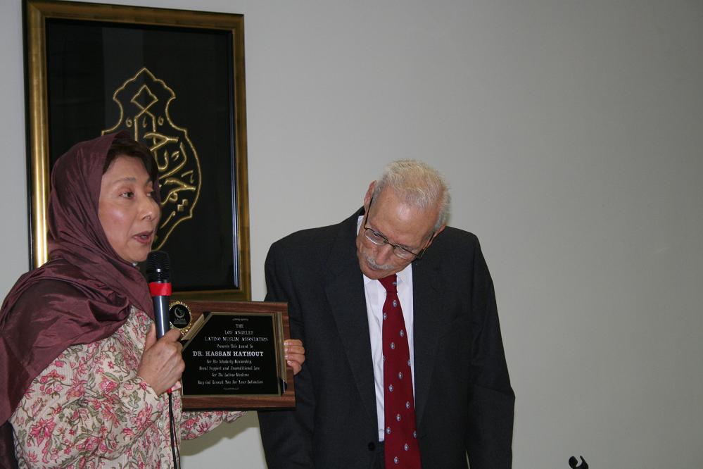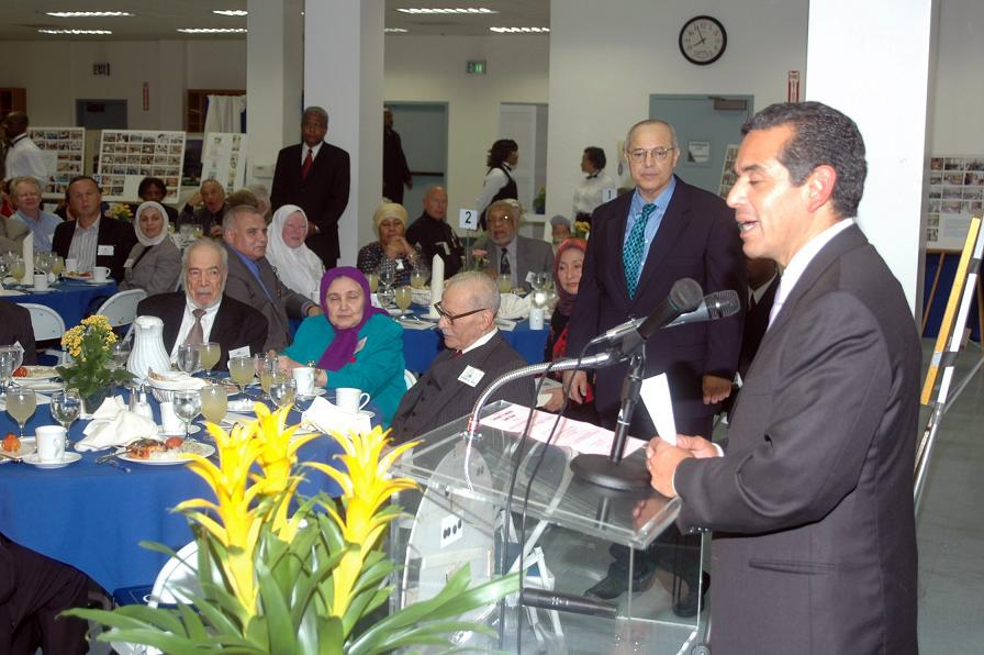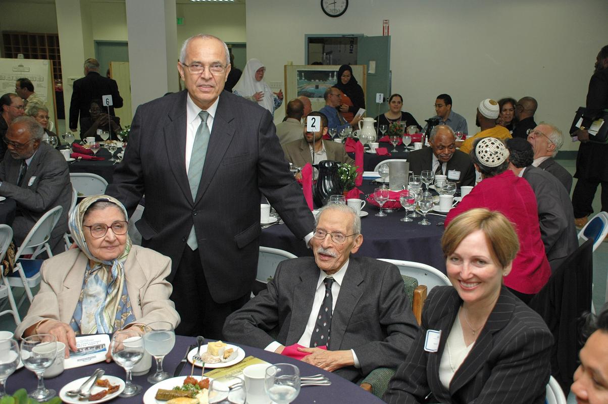 Dr. Hassan Hathout at his keynote speech for the Night of Power, Ramadan 2005, Omar Ibn Al Khattab Foundation, University of Southern California. Folder includes pitctures with political figures and community leaders of various religious denominations and ethnic groups